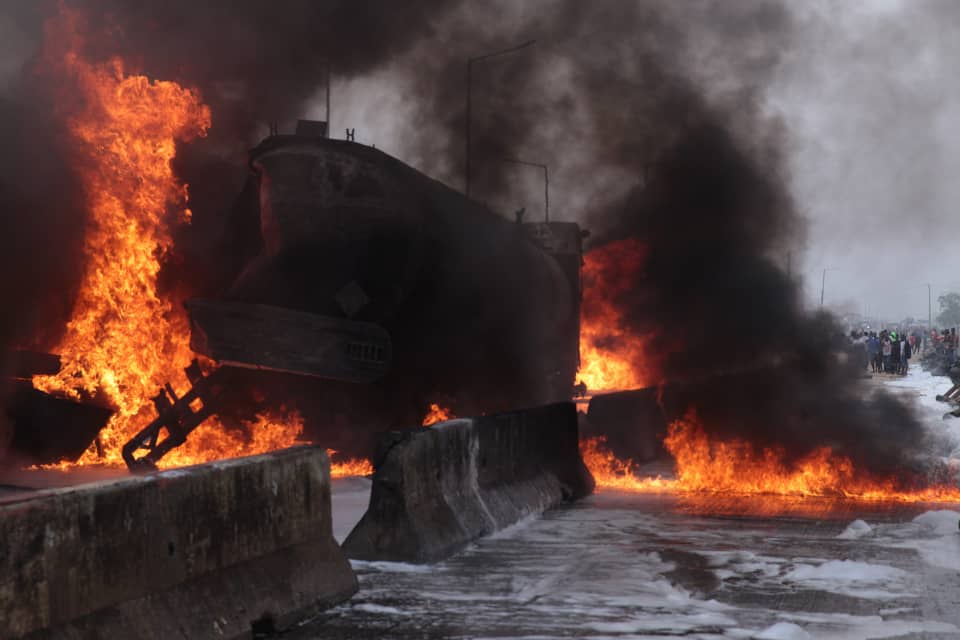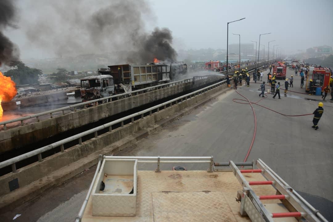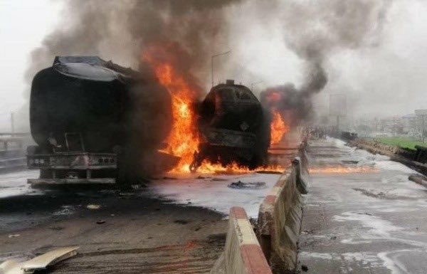 BBC Pidgin, speaking with the driver of the tanker, explained that while he was parked on the bridge waiting for curfew time to be over, another tanker with a failed brake rammed into his own waiting tanker that was how the explosion sounds and wildfires were heard.