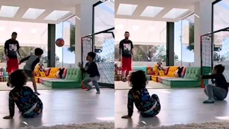 His efforts are always seen on the pitch but there are times that he he plays with them and puts on social media. There are also times he's been seen with Suarez going to watch their children play.