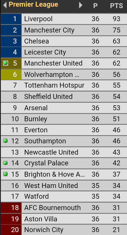 I will be bringing you guys the English Premier League (EPL) table, after all the matches have been played, including Crystal Palace Vs Manchester United.